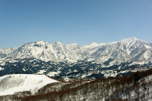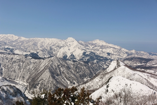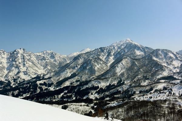 山スキーには大きく2通りございまして…。滑り重視の滑り屋さんと、登山から入った山屋さんの2通り。今は前者が優勢なご時世でしょうか…?あと、中間に位置する融合型も多いかも。ワタクシの場合はわりと後ろ目に位置するのかなあ…。展望が良かったり、歩いている森の雰囲気が良かったりすれば満足できちゃいます。そうは言っても滑るのは楽しいです。なので、滑る要素も盛り込みながらコースを練るわけでございます。 そんなワタクシの好きなエリアが小谷・糸魚川の里山系。わりと近くて、高速代がかからないのも大きな理由ですけど…。糸魚川は世界ジオパークに選ばれてるだけあって、変わった形をした山や地形が多いです。山が尖がっててスキーで登れない山も多いけど、登れる山も意外と多いんです。今日は尖がった2つの山に登ってきました。戸倉山(976m)と善光寺山(792m)です。姫川側はどちらも崖ですが、東側からはスキーで登ることができます。
