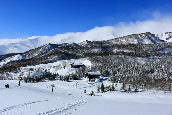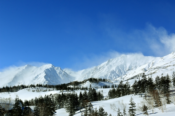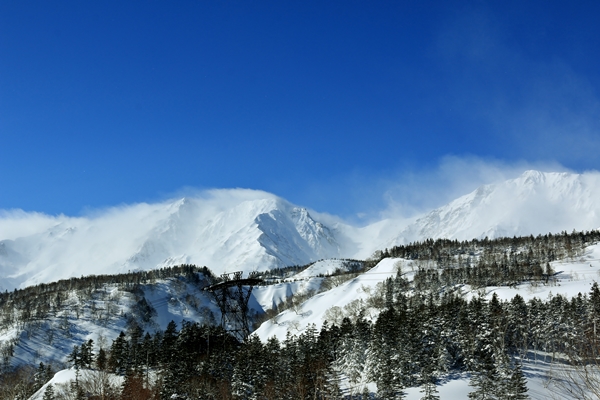 ゲレンデの端っこを登り、林道をショートカット。先頭を歩くaskにわざとジグザグを切ってもらい、初めてのキックターン体験。ずっこけもせず、ずり落ちもせずターン完了。つまらん…。林道を歩いているうちに主稜線の雲も取れてきました。風はちょっと強い感じかな。風がないと日差しを受けて暑いくらいです。