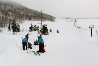 今週はトマの風のN氏からお誘いがありまして、横前倉山スキー企画に混ぜてもらえることに。横前倉山には2006年の3月に一度行ってて、今回が2度目となります。2度目は目指しただけで、登頂はならず…。前日降った雪のおかげで稜線の雪がモコモコと柔らかくて滑らず…。時間を食った上に、気持ち悪さ(雪崩の)もあったので、風吹山荘から巻くことに。滑ることに関しては美味しい場面が少なかったけど、旅系スキーは晴れてナンボ!稜線からの景色はすこぶる良好でした!