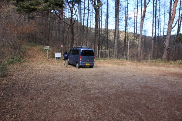 ■楡沢山から降りたあとは桑沢山下山して、次に隣町であります箕輪町の桑沢山へ。楡沢山が微妙だったので気分は乗りません。やめても良かったけど、今日を逃すといつになるやら…と思い直します。桑沢山は山頂は箕輪町なんですが、行程の大部分がお隣の辰野町。登山口から山頂の500mくらい手前までが辰野町となっています。 桑沢山の登山口は標高約1300m。さっきの楡沢山より既に高い!そのぶん林道が長いです。そして、この林道こそが桑沢山の核心なのであります。メチャクチャ悪路ってわけではないけど、長いしわかりにくかったです。タイヤが13インチなのも不利だな…。今年は暖冬なんですが、暖冬の年は太平洋側や内陸の山で雪が多いもの。今年の冬は日本海側も、太平洋側も、内陸も雪がない…。普段の年なら、ここまで車で登ってこれないだろうな。 林道の終点が広くなっていまして、ここが桑沢山の登山口となっております。ここにはちゃんと道標あり。ここも茸山のようで、厳重にテープが張り巡らされています。色んな色で、しかも何重にも。楡沢山よりも雰囲気の良い林の中から始まります。テープが目障り。