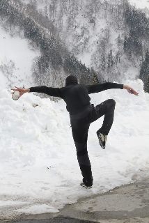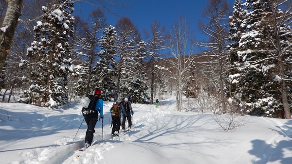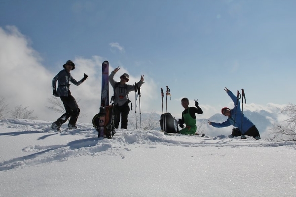 千葉のS本氏を招いての企画、2日目。初日ははくのり南東面でやや重ながらパウダーを楽しみ、夜は楽しい宴会と相成りました。我が家で宴会をした翌日は、中止になる確率が極めて高いけど、今日はちゃんと行ってきました大渚山へ。それもこれも、日帰り参加のN井氏がいたからこそ。大荒れの天気ならまだしも、宴会疲れで中止ってわけにはいきませんからね…。 ■ハプニングもありつつ、雪の少ない大草連へ