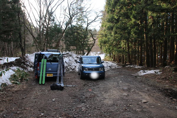 ■ギリギリ林道はシールでスタートできました4連休初日は鳥海山の裾の一部であります稲倉岳へ。まあまあ遠いので、我が家には珍しく前夜発。約6時間で道の駅鳥海まで行って仮眠。よい季節の週末はダダ混みになるんですが、3月の平日は同業者ほとんどいませんでした。翌朝、横岡集落の除雪終点を目指します。なんだかナビの調子が悪く、集落内の道も複雑でかなりウロウロしてしまいました。さすがに平日ということで同業者はナシ…と思ったら、準備中に地元ナンバーの車がやってきました。
