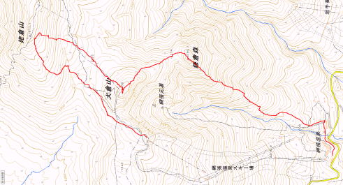 ■まずは姥倉山に向かってみましょう事前にスキーの記録とかは見てなくて、滑れる斜面があるのかどうかもわからず来ました。実物を見ながら考えることに。ま、今回は天気がイマイチですので、一番遠い黒倉山はパス。実際見たところ針葉樹で黒々としているので、スキーで登る価値はなさそうです。裏側は見れてないですが…。そんな意味でも、とりあえず視界があってよかった…。 歩き始めると、姥倉山の南斜面が疎林になっているのが見えました。まずそこへ行くべ!姥倉山に登って滑って、犬倉山に登って、鎌倉森経由で下山する感じかな。姥倉山の西斜面を滑って、スキー場に登り返してくることも考えてたけど、今回はやめときます。実際には見てないけど、針葉樹だらけで楽しくないかも…です。