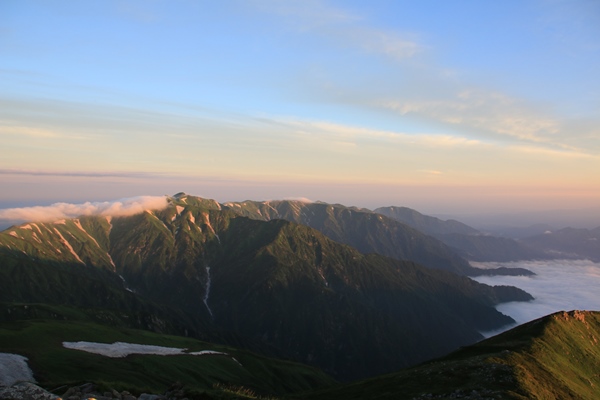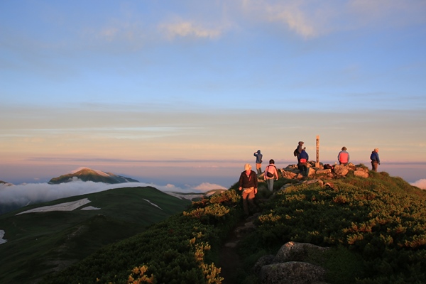 飯豊本山 弥平四郎から飯豊本山からの夕方と朝の景色を堪能してきました ![]() 夕方の飯豊本山からの眺め