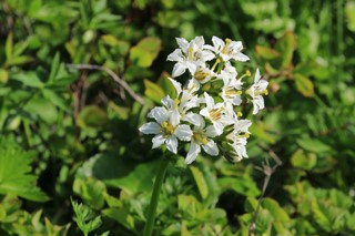 ■切合小屋から本山小屋へ泊まりの荷物を背負うのは昨秋以来。荷物慣れしてないのか、かなりお疲れモードになってきました。相変わらずガスガスで、一つ先のピークが見えるか見えないかの視界。飯豊の大展望がないのは残念だけど、涼しくて体力温存できるとポジティブンに受け取っておきましょう。明日の晴天に期待して、今日は花を眺めながら歩くとしましょう。荷が重くて写真撮るのも大変なんですけどね〜 その花なんですが、切合小屋を過ぎてから本格的になってきました。目立ったのはイブキトラノオとマツムシソウかな。雪渓が融けたあとには、チングルマやハクサンコザクラなども。他にもたくさん咲いてましたけど…。登り基調でアップダウンを繰り返しますが、御秘所からは一気の200m登り!最後の正念場ですな。登り切ったところがテン場!着いた〜って感じでした。