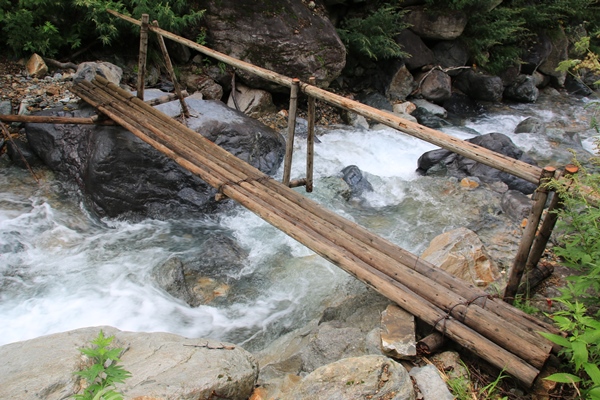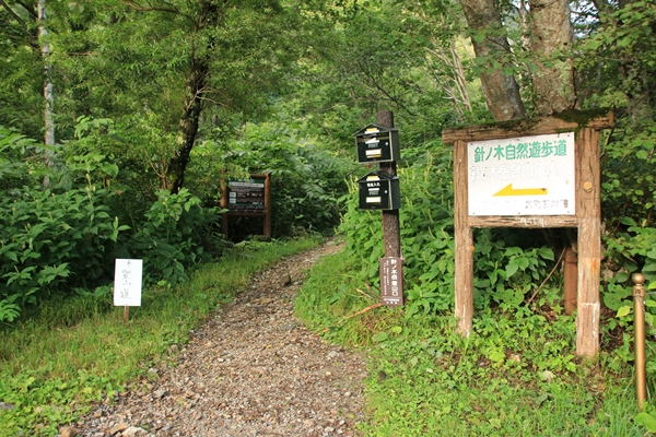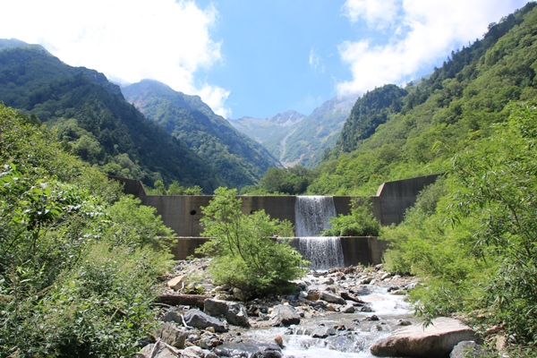 台風一過の平日休み。スカッと晴れそうなので山へ!遠出はできないので近場で行くことになりますが、どこに行くべか…。暑い季節なので北アルプスしかないです。信州側からのアクセスで一番ご無沙汰している山…と記憶を辿りますと、記憶はなかったので記録を見てみますと…なんと針ノ木岳でございました。実に2003年9月以来の13年ぶりでした。そんなに行ってなかったか…という印象。針ノ木峠までは何度も登っているので、久しぶり感はなかったんだと思われます。 ■台風一過のはずなのに・・・曇り空で土日は満車になる扇沢の無料駐車場、さすがに平日は6時でも余裕アリアリ!ちなみに下山したお昼頃は満車でした。台風一過で快晴の朝を信じて疑わなかったのですが、なんと曇り空…。大町の街からは針ノ木岳山頂が見えていたので、雲海なんだろうとは思うけど…。曇りの時間が長くなりそうです。 扇沢から針ノ木岳の登山道へ。かなり空いている雰囲気。登山道は篭川から離れて大回りするので、今回も川沿いの作業道を使わせてもらいます。たいした短縮にはならないんですけどね。せいぜい5分くらいかな。最後ごろは若干草が生い茂ってましたが、文句は言えません…。途中で篭川を2度渡ります。昨日の台風の遠い影響で、水量はやや増えているようです。