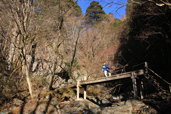 天気は文句なしの快晴!意気揚々と林道を歩き始めます。沢を渡ってヘアピン曲がってしばらくで行き過ぎに気付きます。さっきの車に引き続き、また引き返しです…。林道から登山道になるところは派手に看板あるのに、なんでだか気付かずに通過…でした。二度あることは三度ある、今日は行き過ぎに注意だな。ロスタイムは10分弱かな。