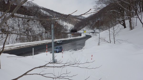 天気も悪く風もあるので、とっとと下りましょう。仙岩峠へはシールかなと思ってたけど、カニ歩きでなんとかしのげました。仙岩峠からは少し下るとブナの斜面になります。ブナの生え具合、雪質とも良好!3月のこの標高でもパウダー残ってました。だいぶ締まってはいるけど底がないところをみると、しばらく雨や高温にはなってないなと思われました。さすがに下の方はグサグサでしたけど…。おかげで緩い登りもシールなしでOK!無事下山であります。