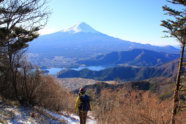 次の展望台は足元悪いところを少し下ったところにあり。稜線から少しだけ離れたこともあり、ここは富士山に加えて南アルプスも!北は甲斐駒から南は聖岳までバッチリ見えました。南アルプスや八ヶ岳は年末年始になっても見た目黒いこともありますが、今年はしっかり雪ありそう。