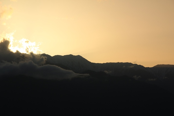 常念岳の少し北に太陽が沈んだ