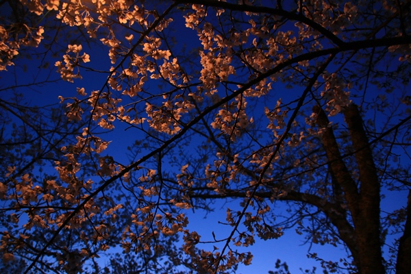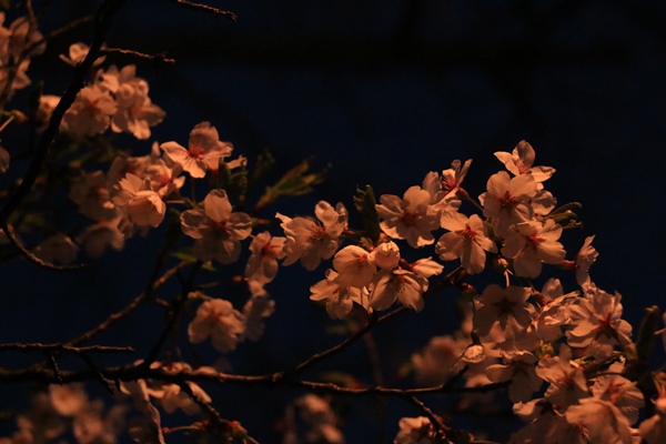 裸電球の光に映される桜