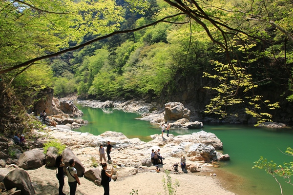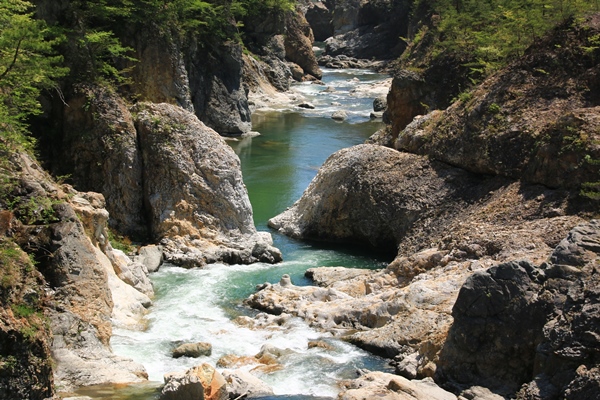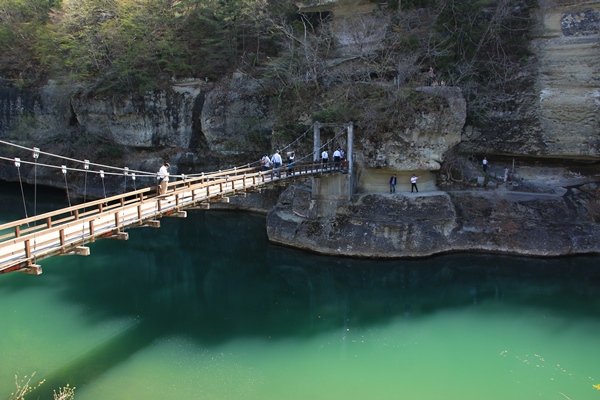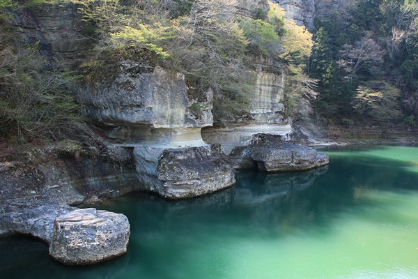 会津田島を過ぎ、栃木県に入ると観光地が続きます。龍王峡の看板と、ちょうどそこに駐車場。では、立ち寄っておきましょう。ちょっと見るだけなのかと思いきや、かなり長いこと歩かされました。なかなか良かったです!