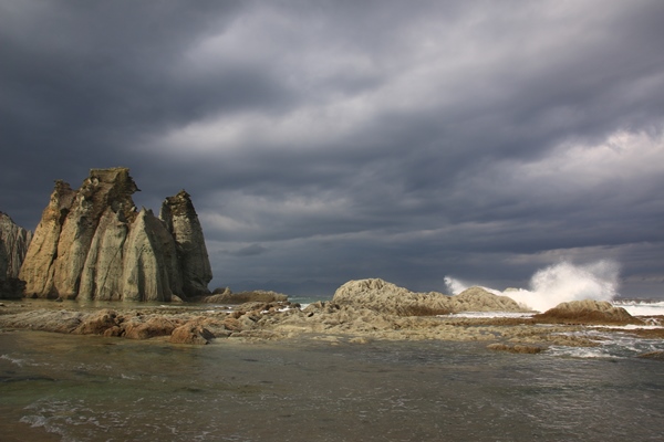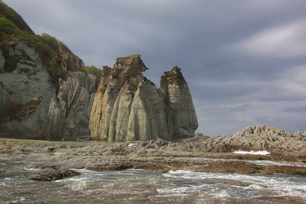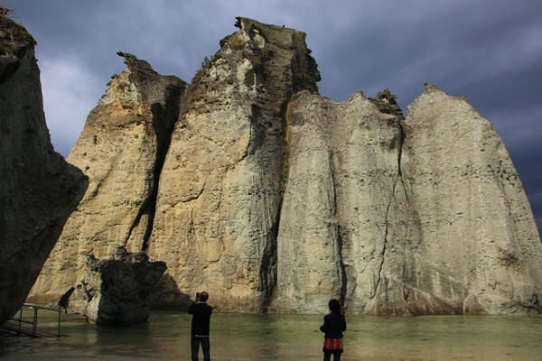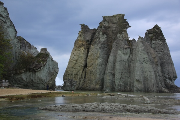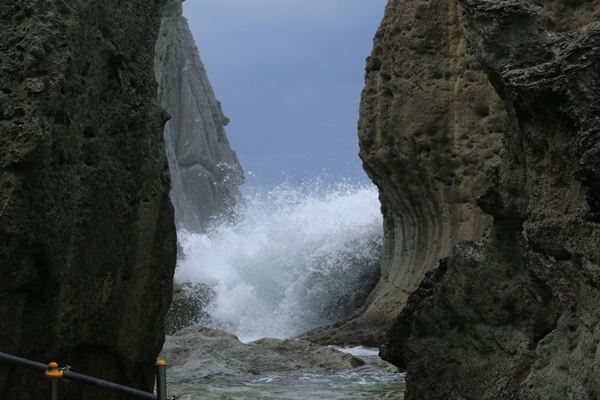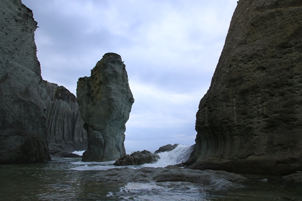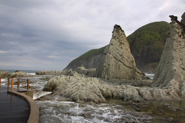 天気は晴れではないけど、雨が降りそうな感じでもない。せっかく来たんだから、歩いて仏ヶ浦に向かいましょう。仏ヶ浦は大迫力の奇岩が乱立していました。たまーに日が差してきた時には岩峰が際立ちます。荒れた海も迫力に拍車をかけていましたね~。細かいことは写真を見て下され。
