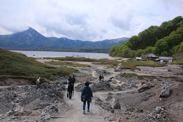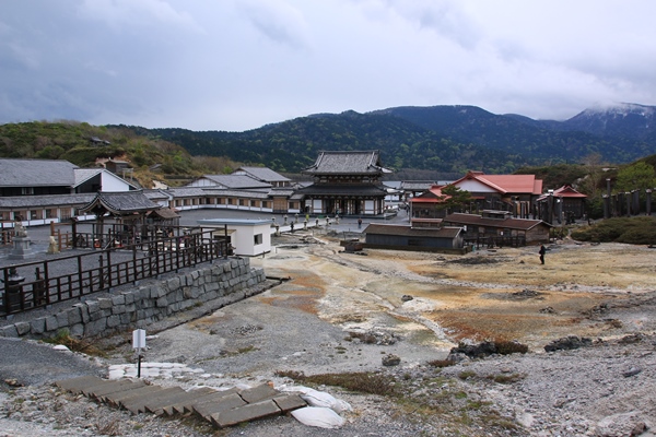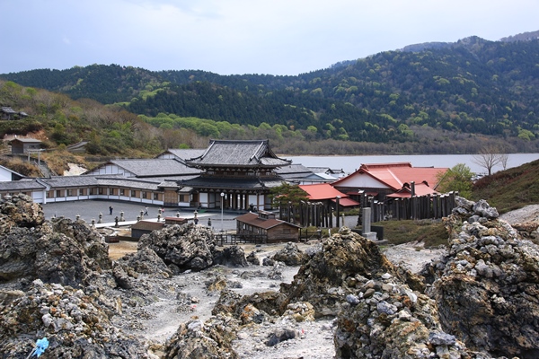 恐山の菩提寺は日本三大霊場。高野山、比叡山と同列なのですから、すごいことです。ちょっと規模は違うようですが。恐山は霊場でありながら、活火山でもあります。宇曽利山湖はカルデラ湖です。菩提地の境内には温泉も湧いてて、無料で入ることができます。せっかくなので入っておきました。