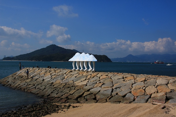 徒歩で周れる手頃な島です。8時40分に島に着き、11時の船で戻るつもりで観光。男木島は周囲約5キロのこじんまりとした島。アートの島ということで、アート作品があちこちに。その中でも目を引く『歩く方舟』を見に行きましたけど、なんだか気味が悪いだけでした。