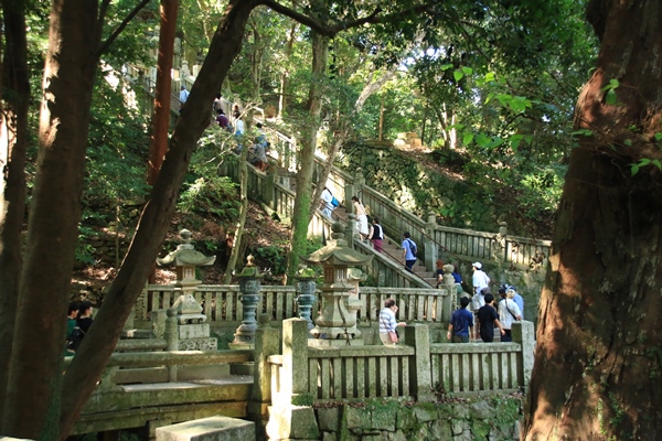 ただでさえしんどい階段。今日はさらに暑さが加わります。猛暑だった真夏ほどではないにしろ、30度超えの真夏日でかなり蒸し暑い気候。本宮から奥社までは階段もさることながら、距離も長くて疲れました。身も心も疲れた…。