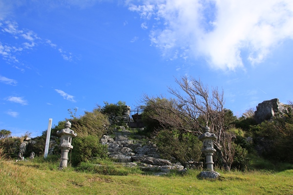ススキ原の岩に神社があった