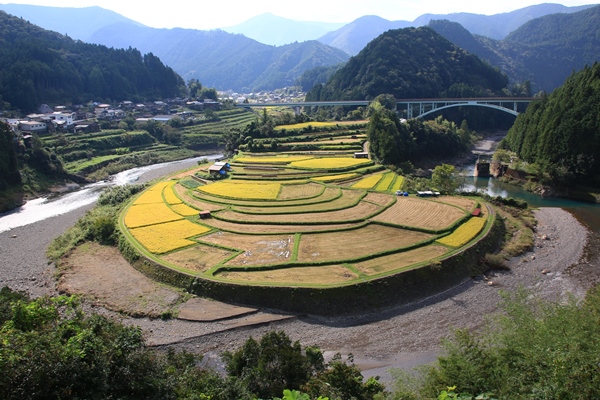 日本の棚田百選のガイド本を見てて、ひときわ目立っていたのがこの『あらぎ島』の棚田。普通の棚田は傾斜地に階段状にあるんですが、このあらぎ田はそんなに傾斜もなく、もしかしたら棚田の定義からは外れてるのかもしれないですね。