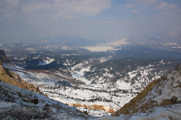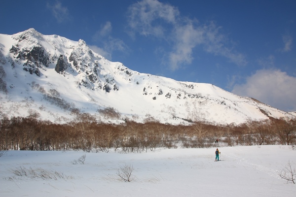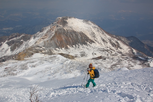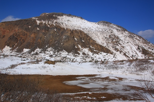 地図で池になってる方に滑り込みました。池は地形的にも雪が溜まりそうなのに、地面が露出してました。地熱があるのかなあ…?沼ノ平自体、噴火口だろうし。あとは沼ノ平を突っ切って赤埴山方面へ。沼ノ平から赤埴山にかけての雰囲気はマッタリしてて好きです。帰りは赤埴山には登らす巻道で。尾根に出た後、トラバースでミネロに戻ろうとしたけど、露出した笹に阻まれて葉山の方に下りました。