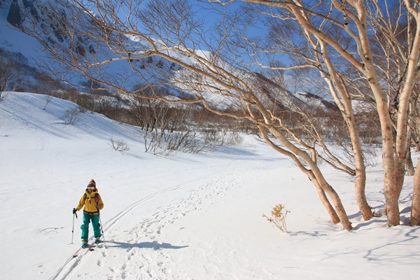 コルからは唯一のスキー向き斜面。沼ノ平に滑り込むロケーションもいいです。が、雪は難しかった…。極悪ではないけど、気を抜くとやられる雪。ザラメの表面が凍った感じかな~。でも、沼に近付くにつれ良くなり、沼への最後の1本はそれなりに気持ちよく滑れました。