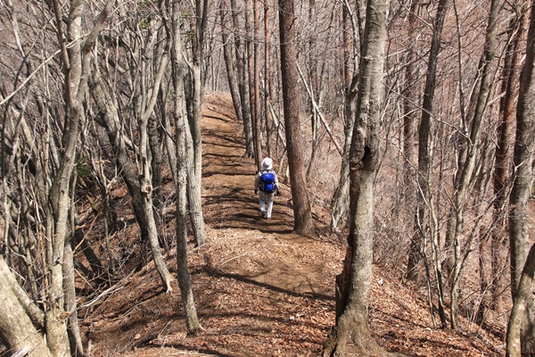 目指す方向に高い山が見えてるけど、それが杓子山なんだろうか…。コースタイムのわりに近く見えるなあ…。と思っていたら、大榷首峠(おおざす峠)までの間はアップダウンが多くてはかどりません。大榷首峠から杓子山まで標高差にして270m弱あるので、やっぱコースタイム1時間15分は妥当なのかな。大榷首峠からの登りは歩きやすい良い道でした。