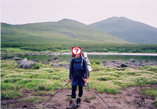 夕べはテントの外に熊除け鈴をぶら下げて寝た。その時は無風で、風がないとぶら下げても意味がないなあと思っていた。夜になると風が出てきて、今度はうるさくて寝れなかった。予報では昼まで雨とのことだが、薄曇は出ているが崩れそうな雰囲気はない。朝から北海道の1300mとは思えないくらい蒸し暑い。