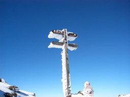 地蔵尾根の分岐あたりは無風だったが、赤岳山頂はやや風があった。じっとしていたら寒いので、休憩はそこそこにして下山開始。下りはストックをピッケルに持ち替える。