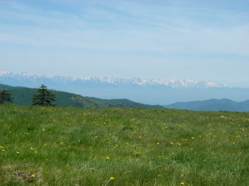 大陸育ちの高気圧に覆われ、今日は澄んだ青空が広がった。北アルプスはもちろん、乗鞍、御岳、中央アルプス、南アルプス、富士山、奥秩父の山々、浅間山、頚城の山々・・・等、360度丸見えだった。翌日(6月6日)から梅雨入りしたのだが、その兆候など全くなかった。